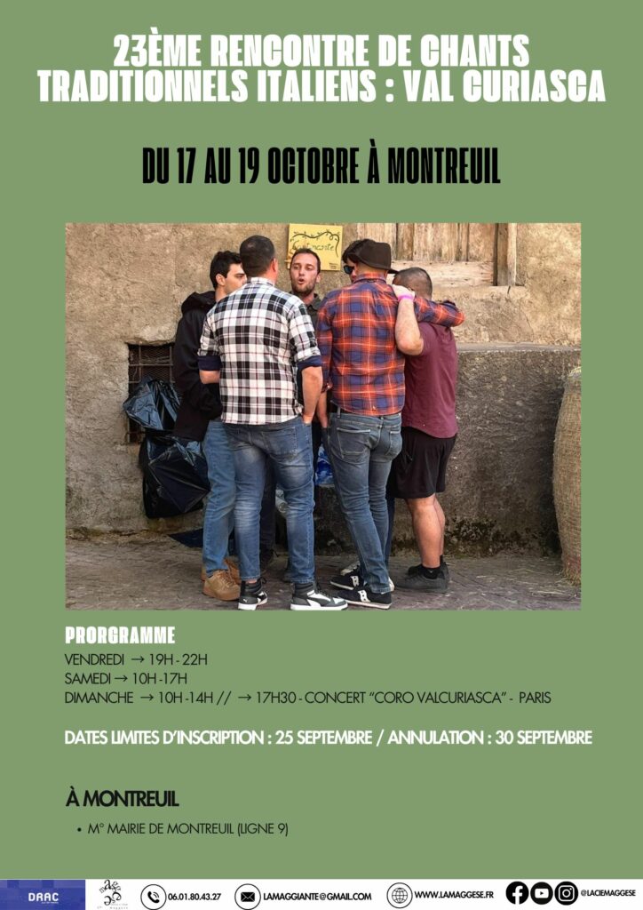 23ème Rencontre de chant traditionnel italien “Coro Val Curiasca” Chants des 4 provinces !!!!! ou Quand l’Apennin se met à chanter …. à Paris !!!