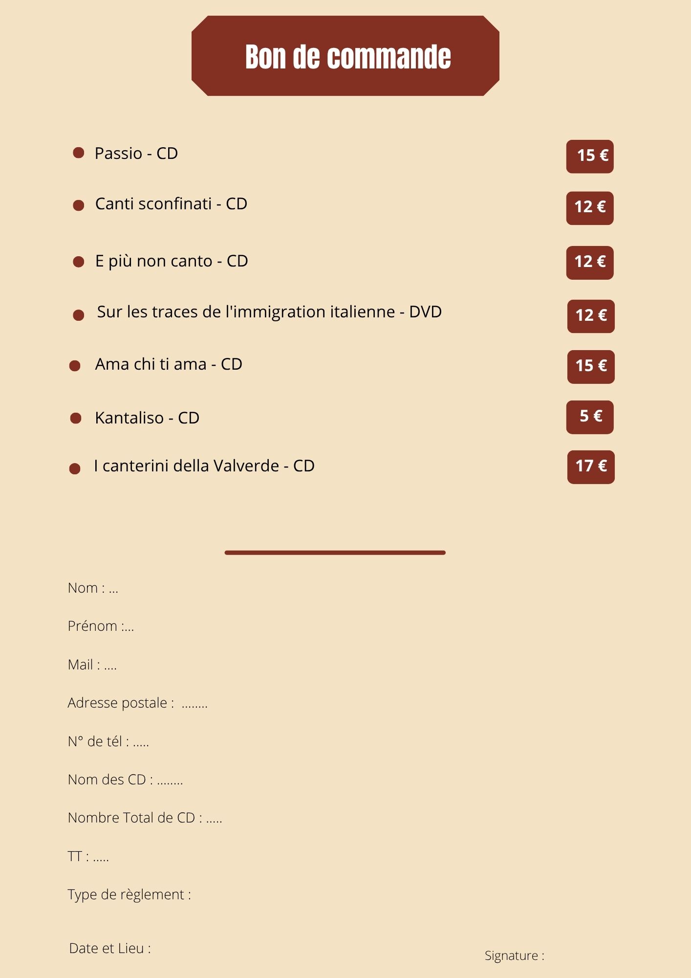 Pour acheter un CD/DVD envoyer un mail : lamaggiante@gmail.com avec le bon de commande remplis pour réserver et régler un CD ou DVD
